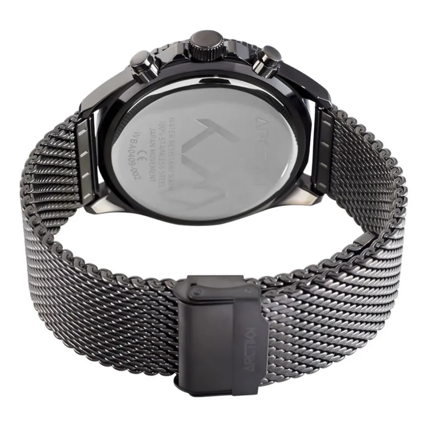 Montre Arctik Oxcal Acier Gris Ronde Quartz Chronographe 46mm Lunette Bleue Fond Bleu Bracelet Milanais Acier Gris Wba0409-002