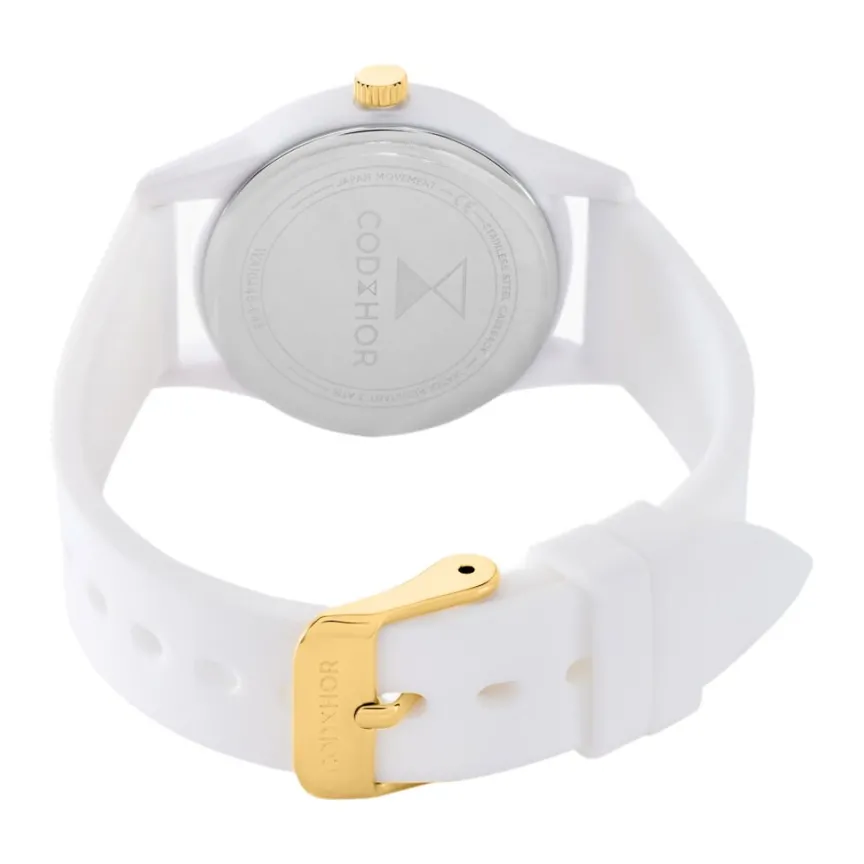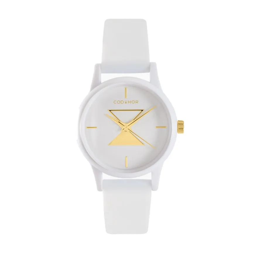 Montre Codhor Pauline Plastique Blanc Ronde Quartz 33mm Fond Blanc Sablier Bracelet Silicone Blanc Wai0446-048