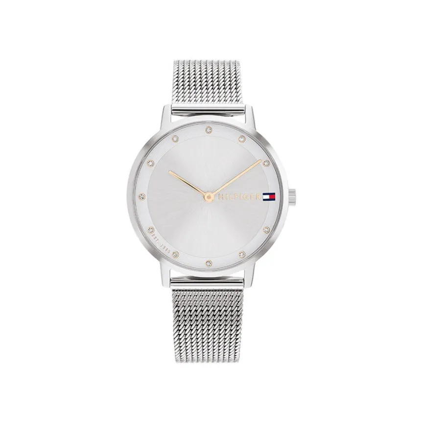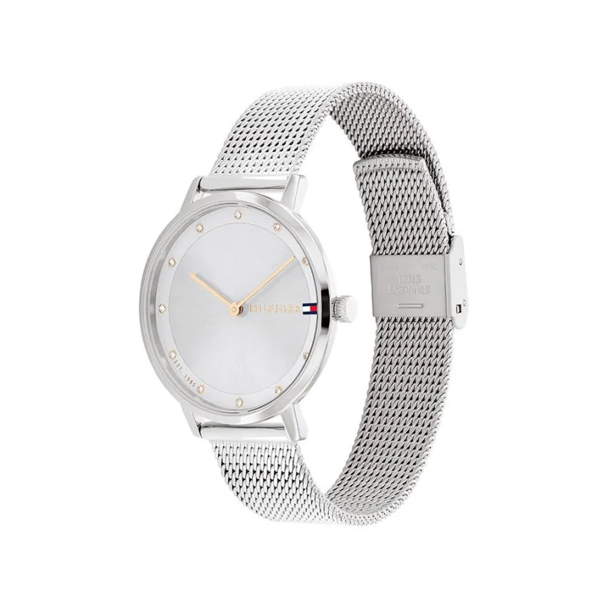Montre Tommy Hilfiger Pippa Acier Argenté Ronde Quartz 34mm Fond Blanc Bracelet Maille Milanaise Acier Argenté 1782665