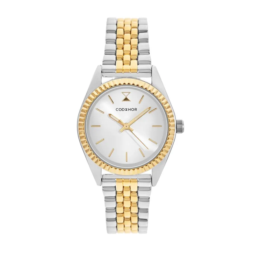 Montre Codhor Sandy Dore Ronde Quartz 32mm Lunette Crantee Fond Blanc Bracelet Alliage Bicolore Wbc0126-024