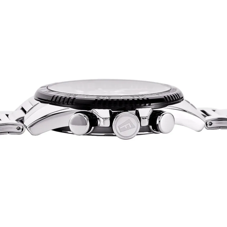 Montre Festina Timeless Chronograph Acier Blanc Ronde Quartz Chronographe 45mm Fond Noir Lunette Noire Bracelet Acier Argenté F20560/6