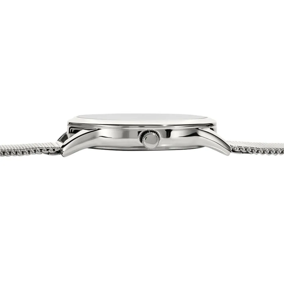 Montre O Watch Chill Alliage Argenté Ronde Quartz 41mm Fond Bleu Bracelet Maille Milanaise Acier Argenté P100960-e