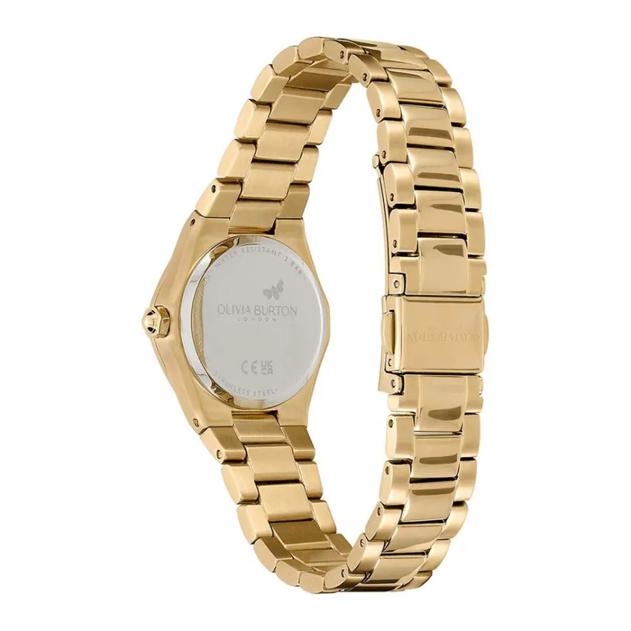 Montre Olivia Burton Mini Hexa Acier Doré Ronde Quartz 28mm Fond Marron Motif Fleurs Bracelet Acier Doré 24000107