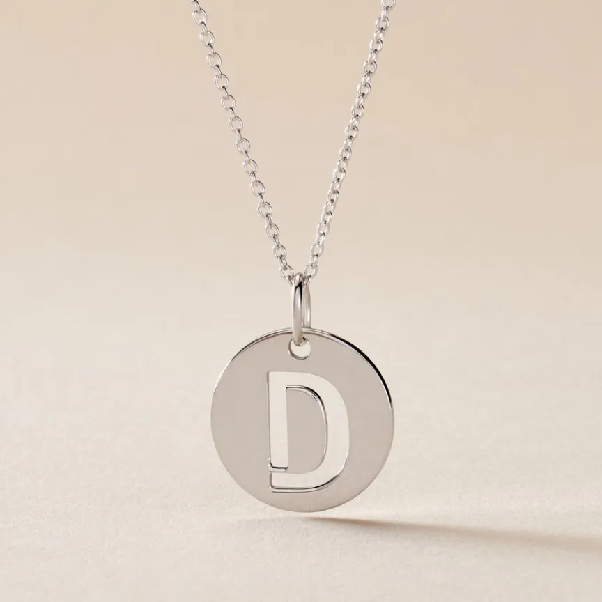 Pendentif Argent Blanc 925/1000 Pastille Lettre D Diametre 18mm