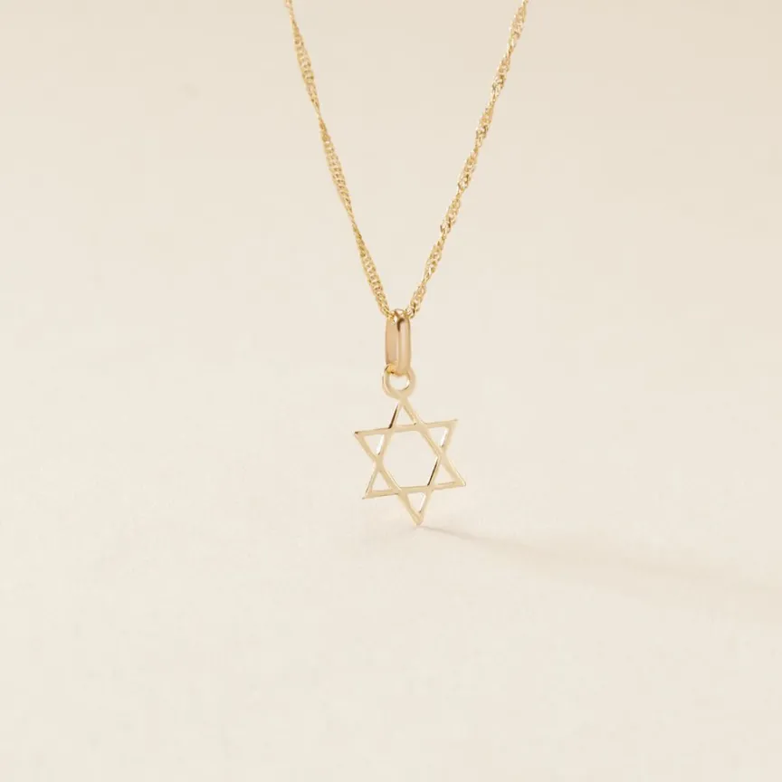 Pendentif Or Jaune 375/1000 Motif Etoile De David Lisse Ajourée