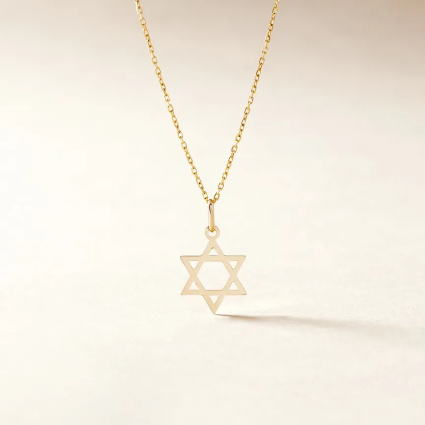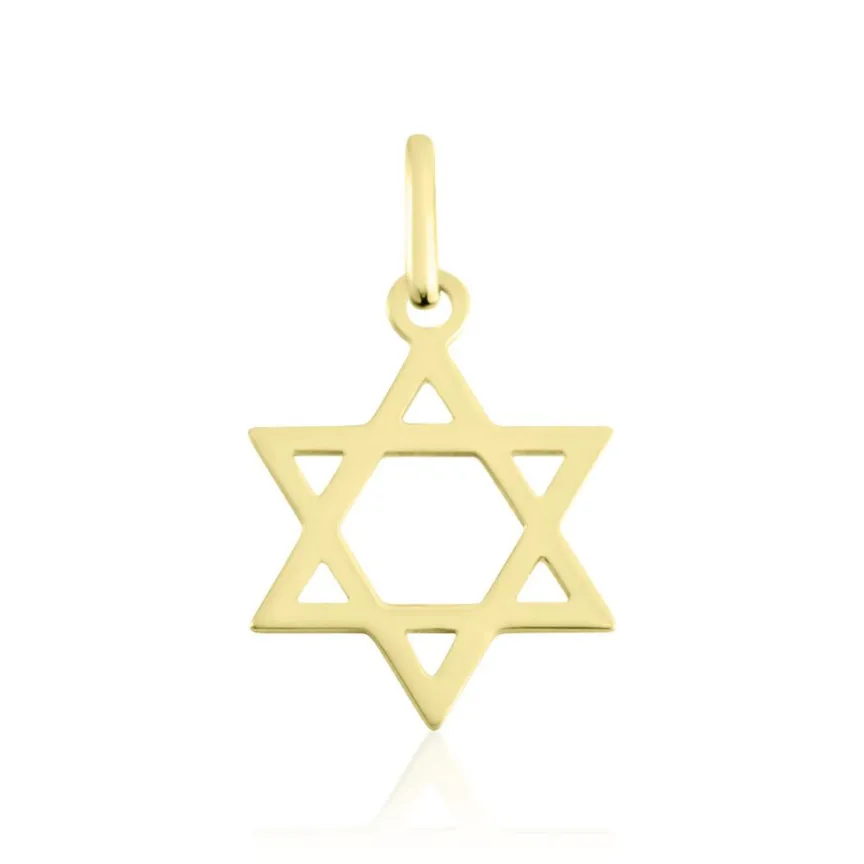 Pendentif Or Jaune 375/1000 Motif Etoile De David Lisse Ajourée