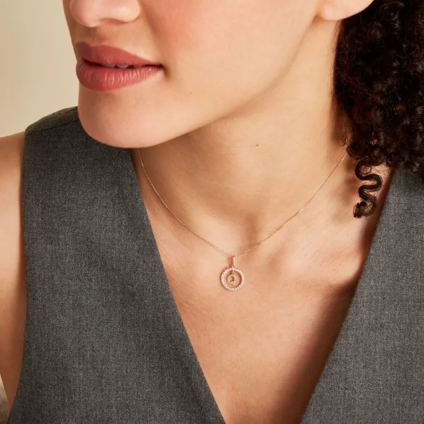 Pendentif Lettre Q Or Jaune 375/1000 Entourage Oxyde De Zirconium Blanc