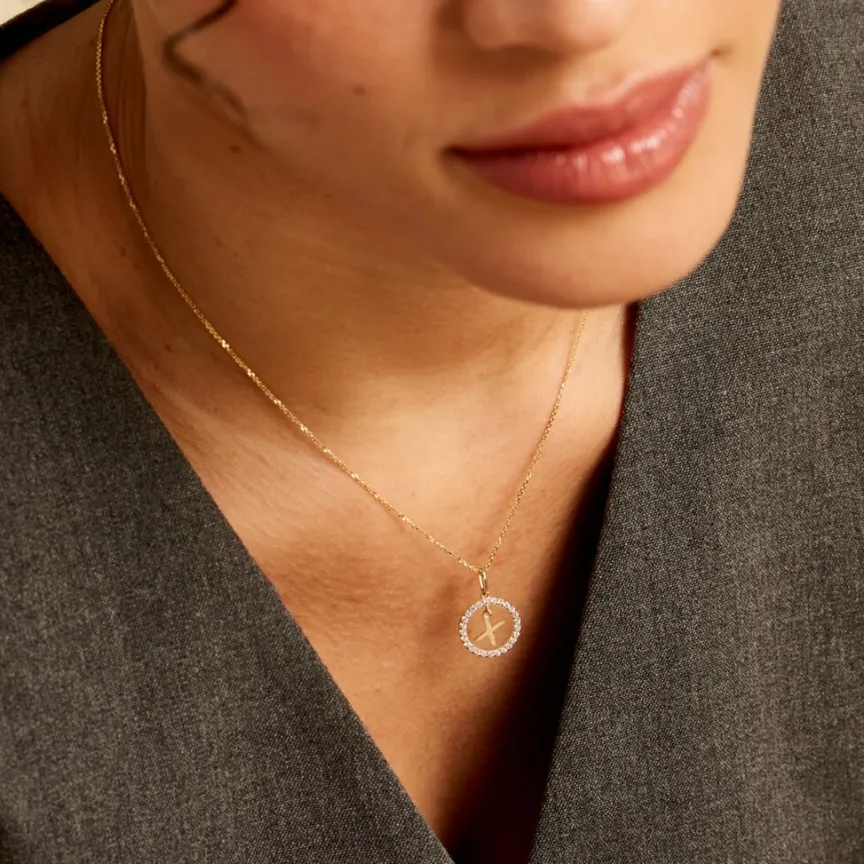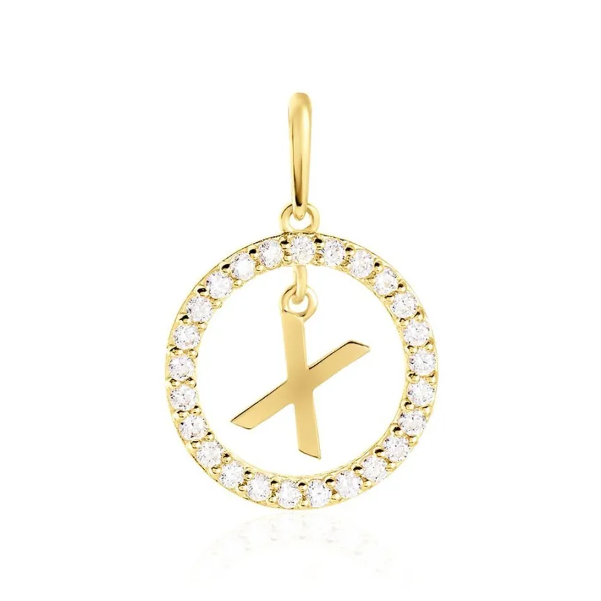 Pendentif Lettre X Or Jaune 375/1000 Entourage Oxyde De Zirconium Blanc