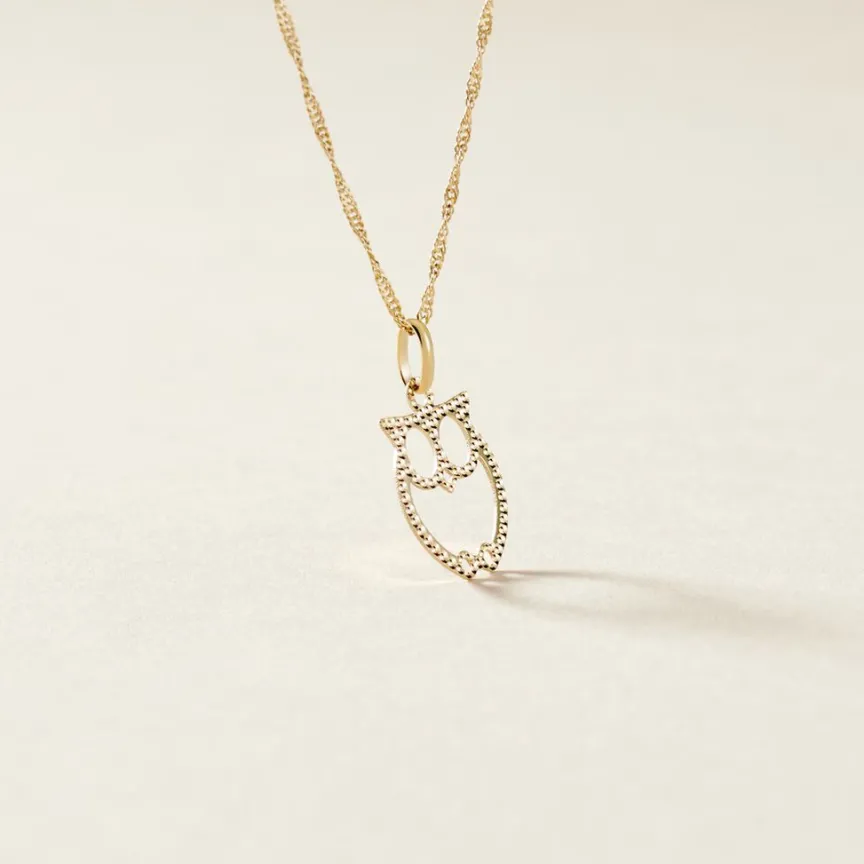 Pendentif Or Jaune 375/1000 Forme Hibou Creux
