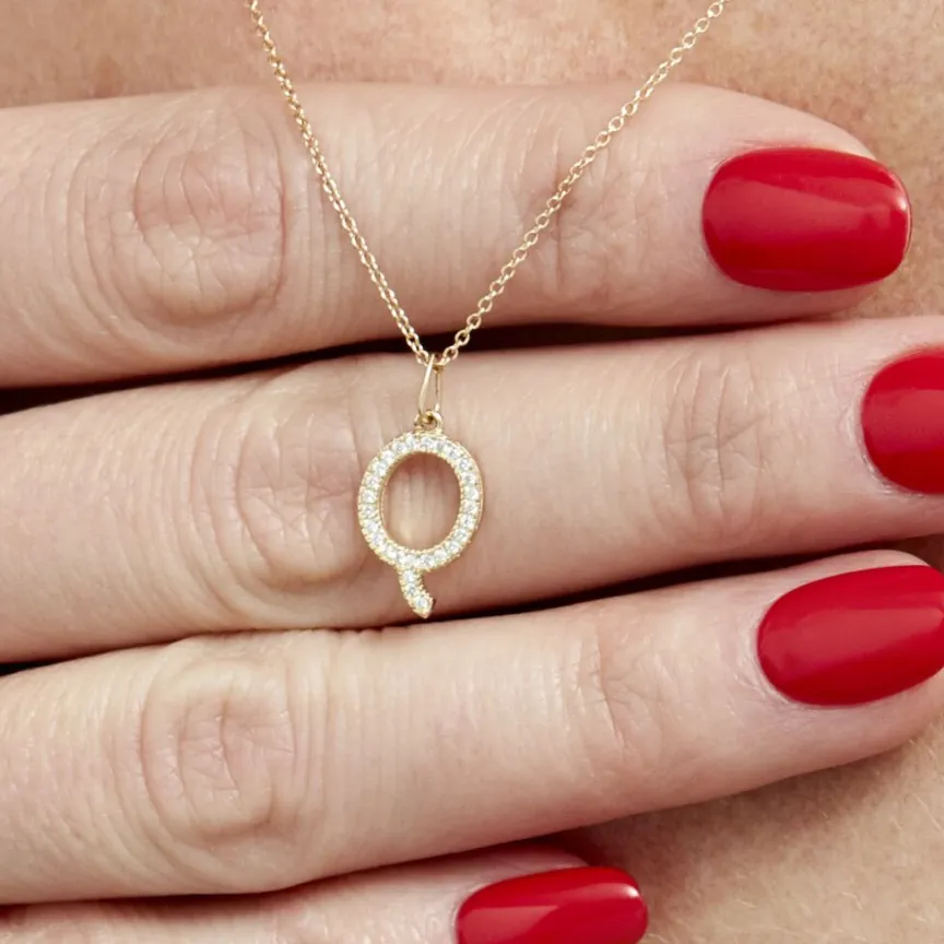 Pendentif Or Jaune 375/1000 Lettre Q Oxydes De Zirconium