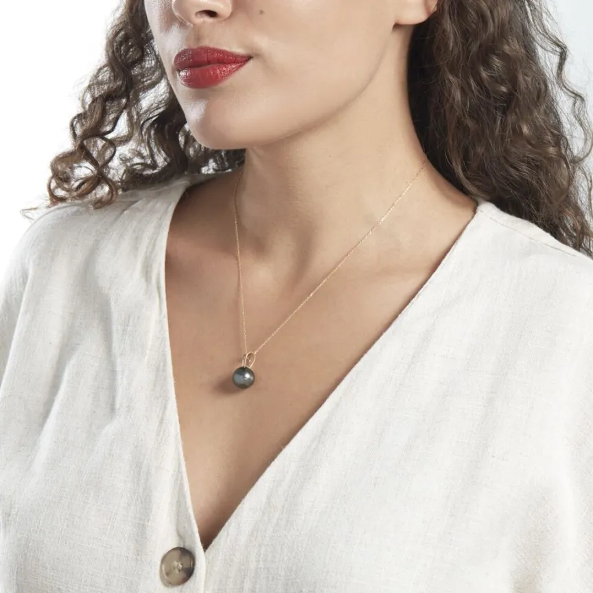 Pendentif Or Jaune 375/1000 Perle De Culture De Tahiti Noire 12.5/13mm