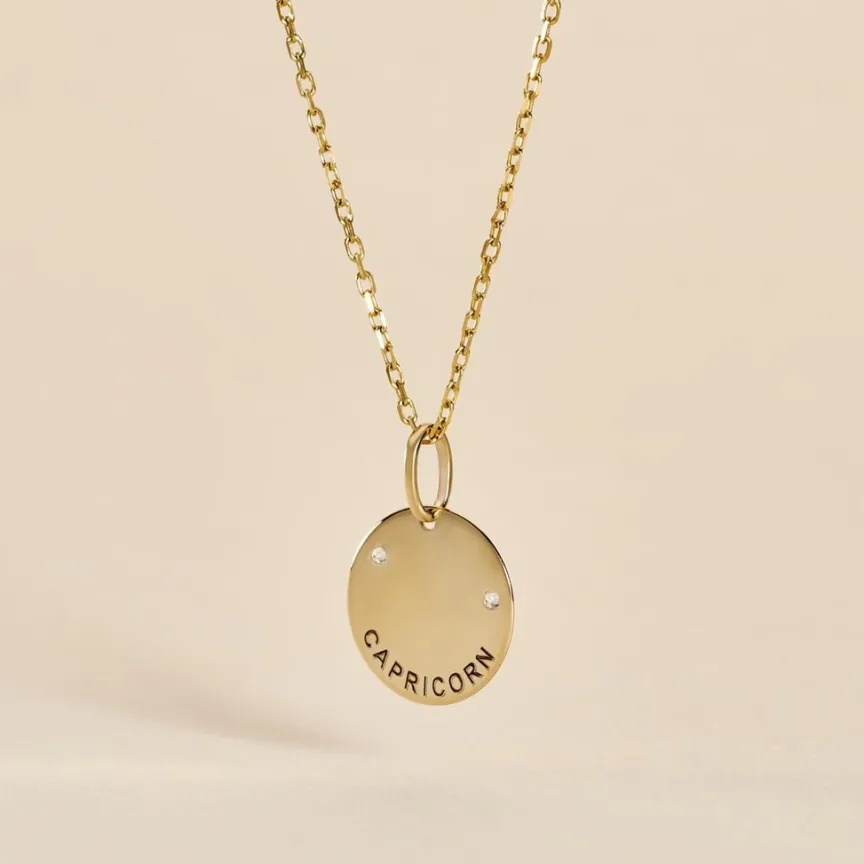 Pendentif Or Jaune 375/1000 Zodiaque Capricorne Oxyde De Zirconium 0.045cts Serti Grains