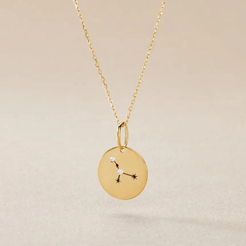 Pendentif Or Jaune 375/1000 Zodiaque Cancer Oxyde De Zirconium 0.045cts Serti Grains