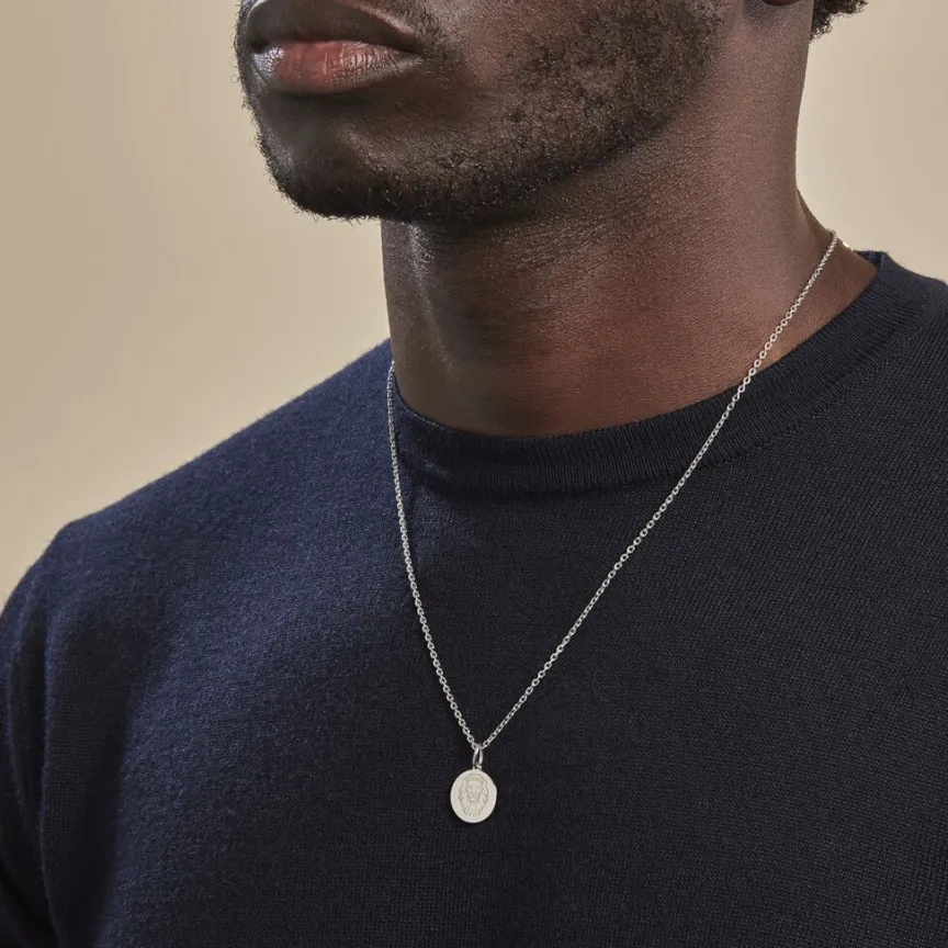 Pendentif Argent Blanc 925/1000 Medaille Ronde Motif Lion