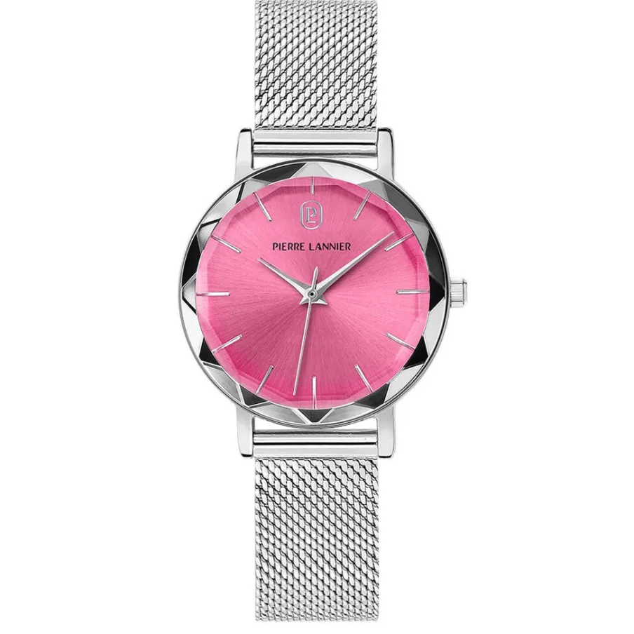 Montre Pierre Lannier Multiples Acier Ronde Argente Quartz 30mm Fond Rose Bracelet Acier Argente Milanais 009m651