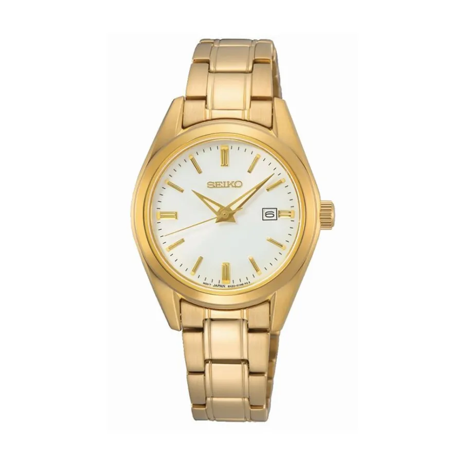 Montre Seiko Classique Acier Dore Ronde Quartz 29.8mm Fond Blanc Bracelet Acier Dore Sur632p1