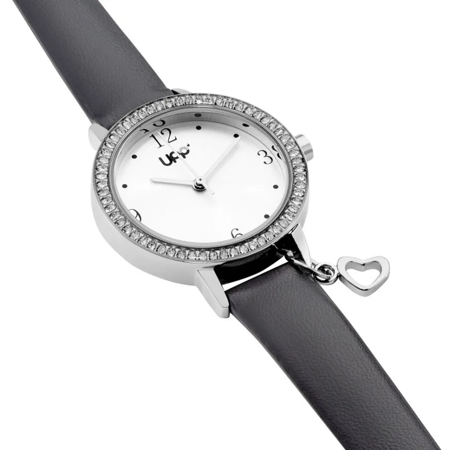 Montre Upp Julia Alliage Argenté Ronde Quartz 30mm Fond Blanc Bracelet Synthetique Gris Cl230