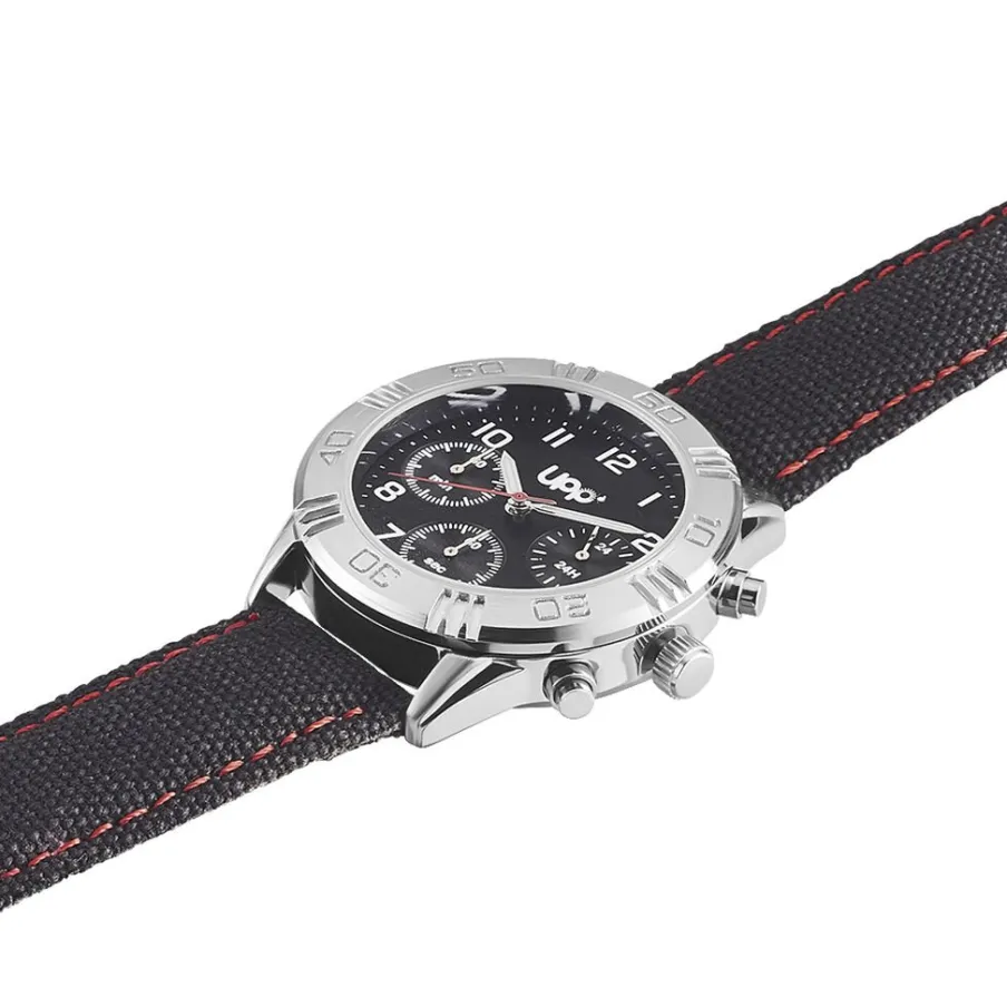 Montre Upp Lucas Alliage Argenté Ronde Quartz 36.5mm Lunette Argentée Fond Noir Bracelet Tissu Noir Et Couture Rouge P100915-b