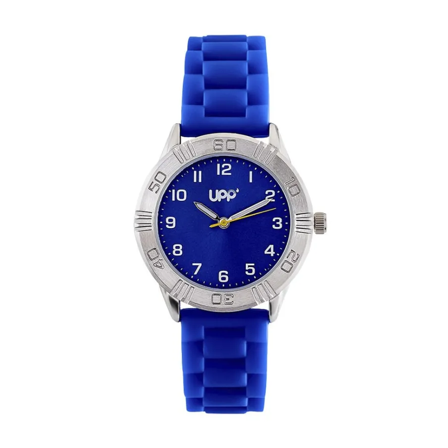 Montre Upp Matthieu Alliage Argenté Ronde Quartz 36.5mm Lunette Argentée Fond Bleu Bracelet Silicone Bleu P100915-c